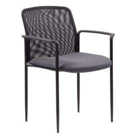 The stackable mesh guest chair in black is the perfect addition to any room or office. For smaller spaces, the chair can be stacked 4 high and stored away when not in use. The chair is at a fixed height with fixed arms and is designed with a mesh seat as well as a breathable, airy mesh back. The black chair adds a modern, professional appearance to any space and has a weight limit of 275 lbs.