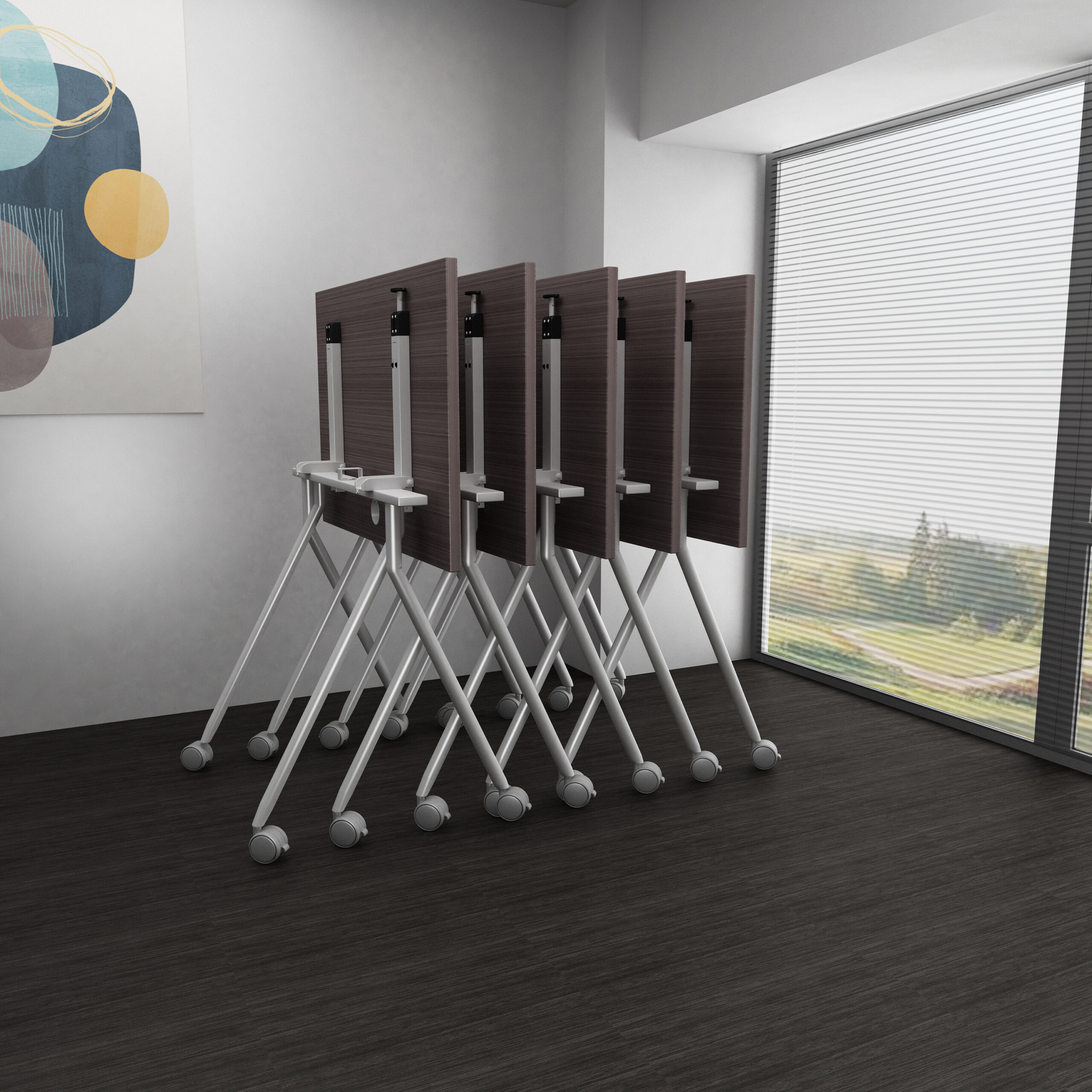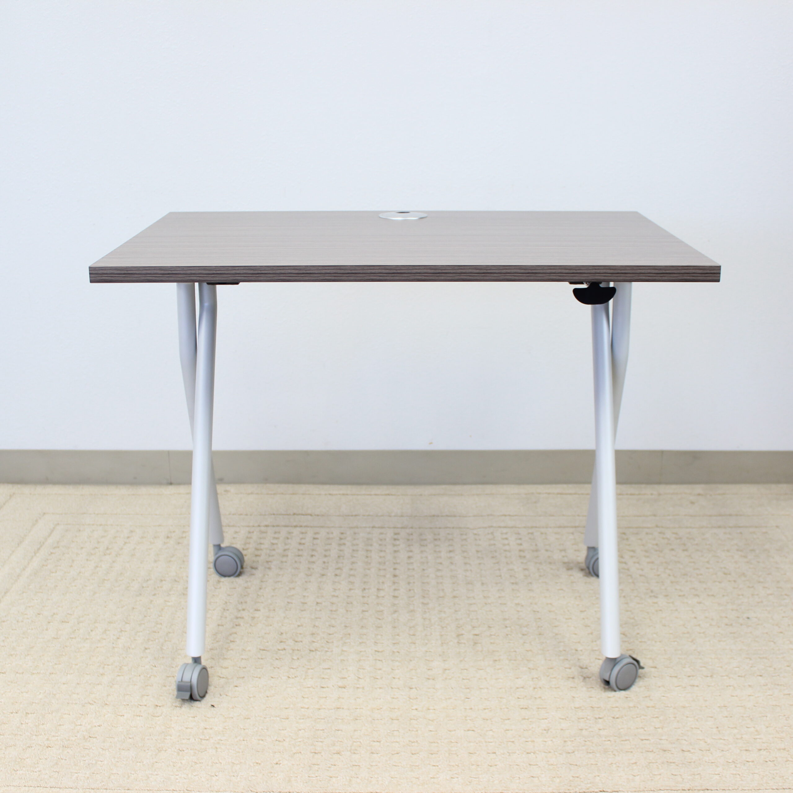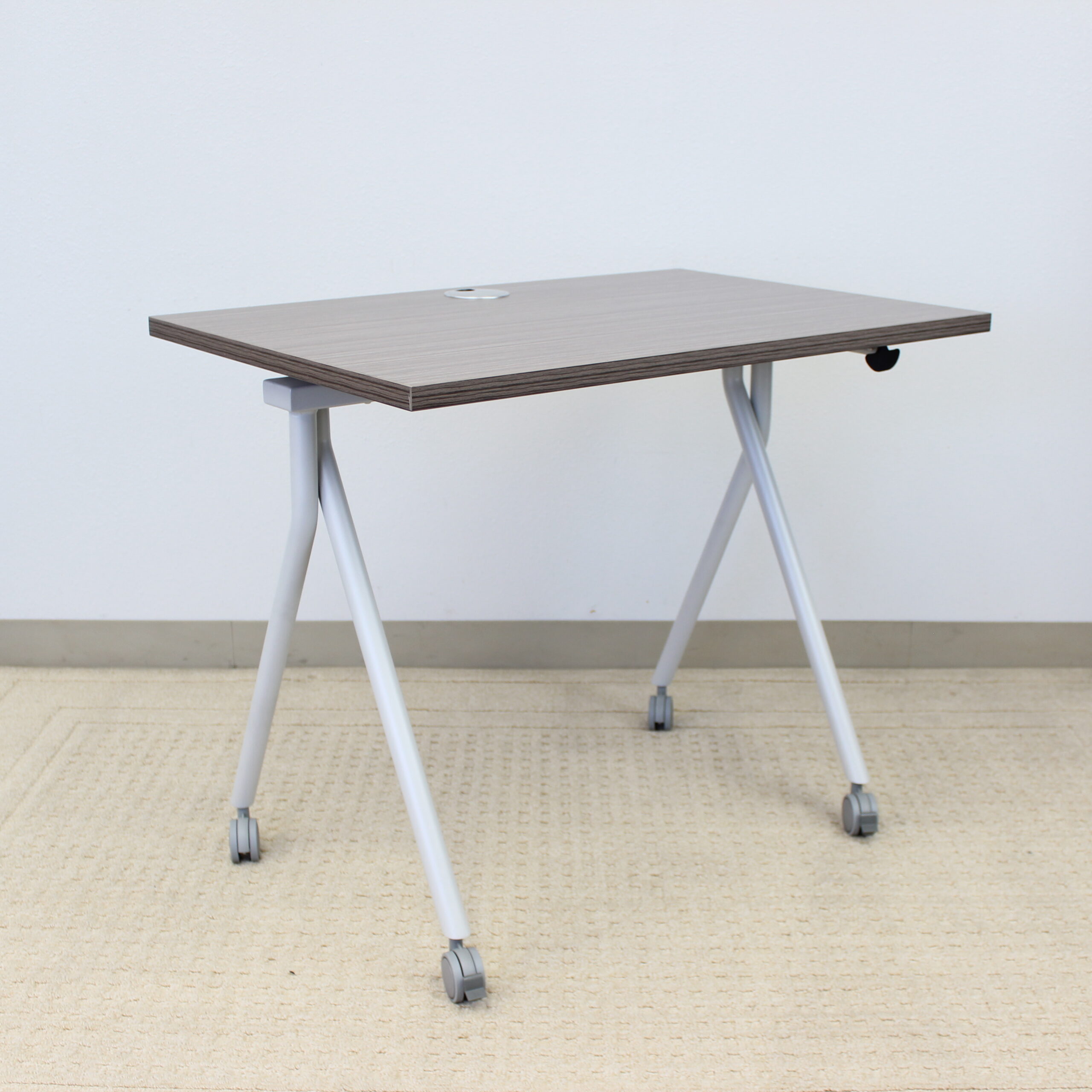 These new Boss Flip Top Training tables are not only stylish but extremely functional. They can be used in a multitude of applications including but not limited to training applications, socially distanced meeting environments, and of course in small and home office applications. Featuring steel frames finished in an ultra-sleek silver sure to accent any environment. The tops lock in either position for safety concerns. The top also features a single grommet for wire management in more permanent applications. The top of this unit is 36” wide and 24” deep. The finish features our proprietary Driftwood finish. With heavy accents in the grey tones and an underlying warm earth tone hint, the finish is complementary to almost any décor.