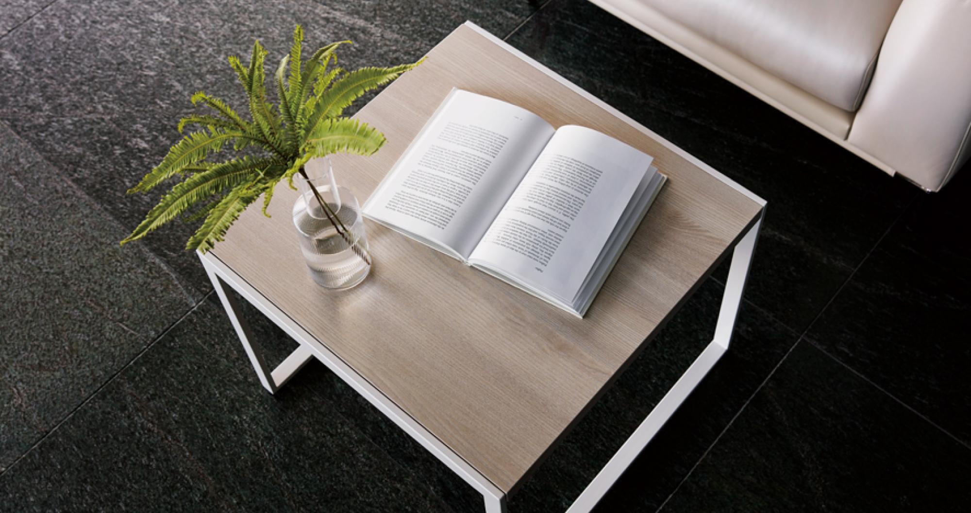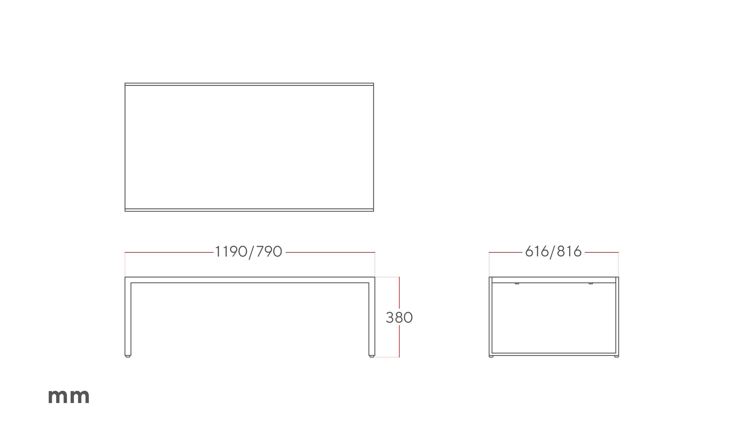 Wood Top Panel Sofa Coffee Table A rectangular sofa table that harmonizes a basic wood top panel and simple lower design. 23.23 x 16.34 x 17.72 inches