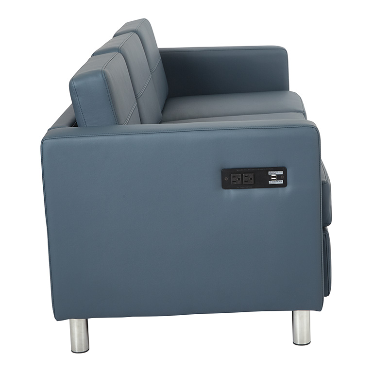 • Featuring all the comforts of a traditional couch, you’ll be able to kick back and relax while your phone charges up in the built in AC and USB charging station of this modern sofa.